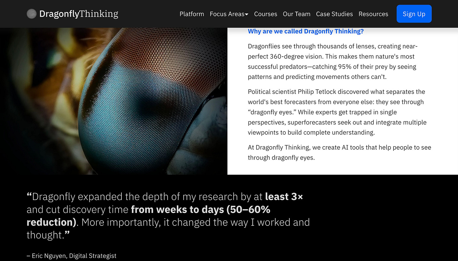 I sometimes joke that I have a tendency to fall in love with the people who I help with their books. I become taken with their research, end up seeing everything around me through their unique lens, and often the collaboration grows into a friendship. A few years ago, I worked with an Australian lawyer and academic named Anthea Roberts on the early stages of a book idea, and this process of professional and intellectual enamorment felt more accelerated than usual. This was partly because we had a fun rapport on Zoom, and also because we had a lot of interests in common—one of which was the mental mechanics behind creative thinking. She talked about writing a future book on metacognition and decision-making that she planned on calling Dragonfly Thinking. She hasn’t written that book, at least not yet. Instead, in 2023 Anthea co-founded an AI startup with that name.